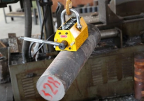 工厂冷作模具钢起吊搬运工人使用永磁起重器,永磁起重器是一种专门用于钢板、钢材、钢锭等钢材类物品起吊的工具,永磁起重器具有体积小、吸持力更强,不用电,剩磁几乎为零,安全系数高等特点。